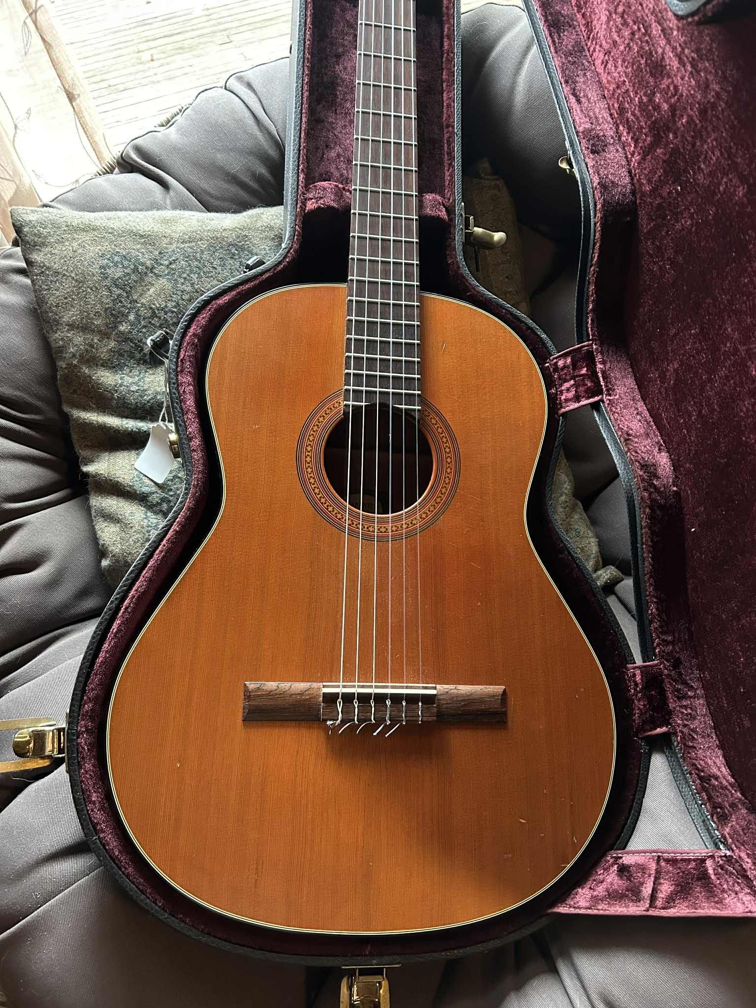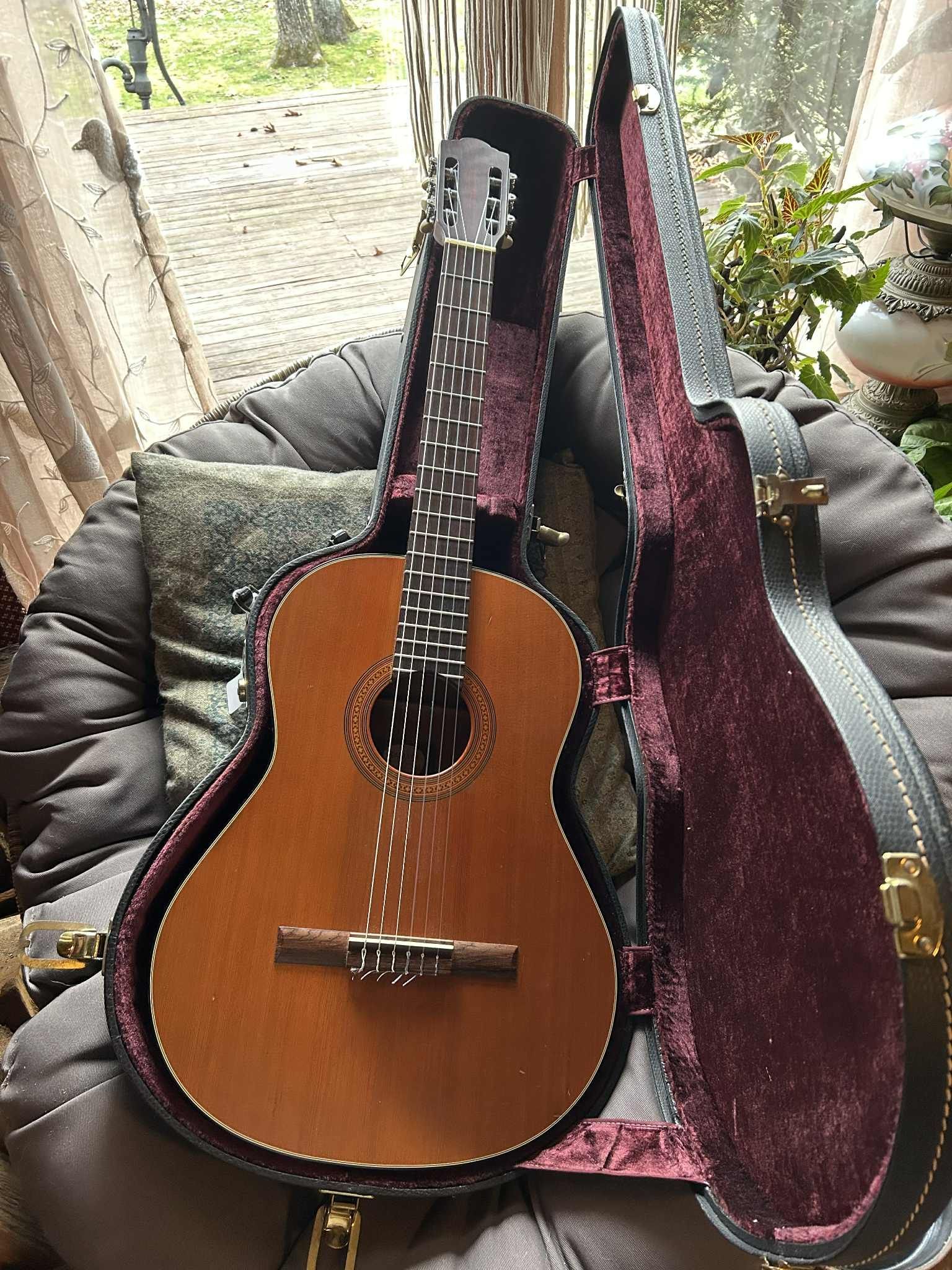 Circa 1970 Guild Hoboken MK II Classical. Natural. Original Hardshell Case. Solid Spruce Top. Solid Mahogany Back /Sides. Rosewood Board / Bridge. Very Great. Conditon. All set Up Days of Stretching Strings , The right and hard to find ones. Plays Like a Dream $550.